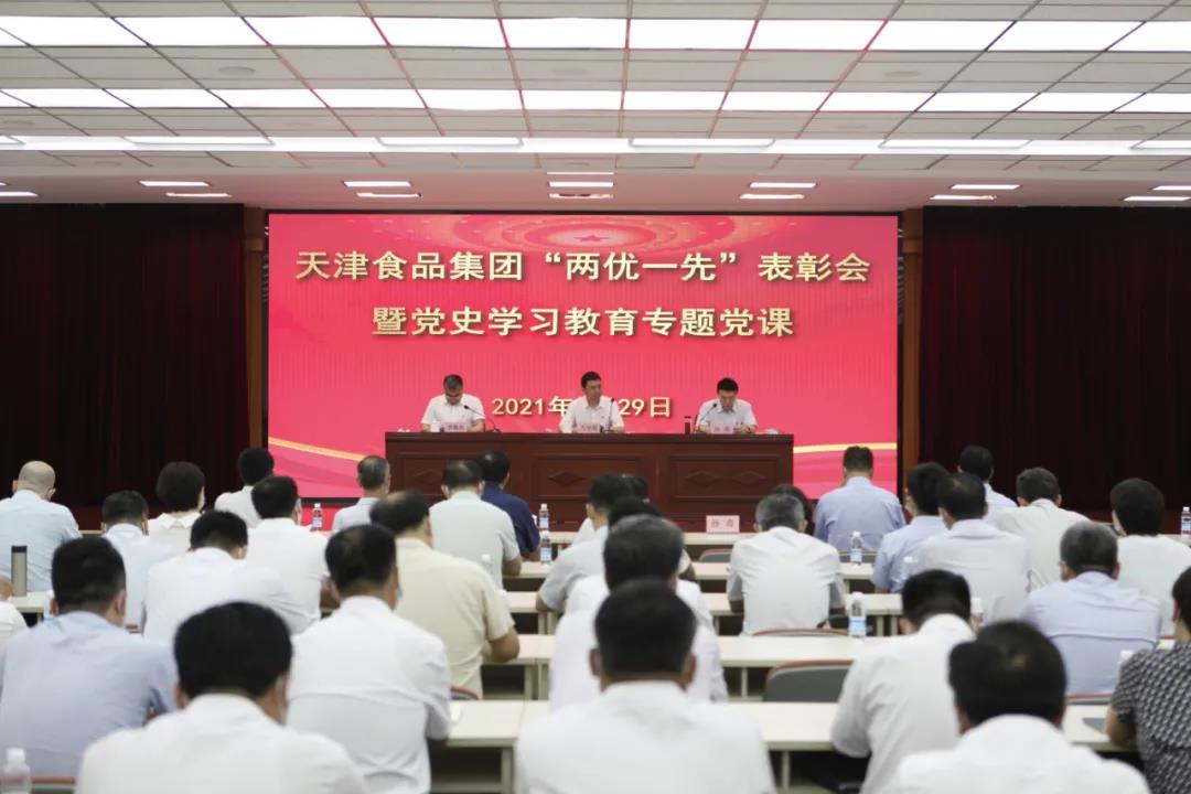 6月29日上午,天津食品集團召開“兩優一先”表彰會暨黨史學習教育專題黨課。熱烈慶祝中國共產黨成立100周年,總結黨史學習教育階段工作,部署下階段工作重點,表彰近一年來涌現出的先進基層黨組織、優秀共產黨員和黨務工作者,啟動“奮戰下半年,確保開好局”活動,并由集團黨委書記、董事長萬守朋講授黨史學習教育專題黨課。