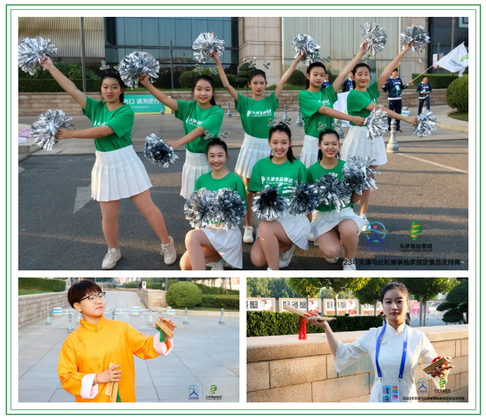 集團下屬經貿學校的學生孟欣妤為跑友們帶來了一段名為《樂游天津》的天津快板,她說這段快板要圍繞體現“集團”“天馬”和“樂游天津”三個元素,展現當代中職學生的風采,宣傳家鄉天津。另外,由30位學生組成的啦啦操表演也正在進行。這段名為“卡路里”的啦啦操呈現出青春、積極、陽光、快樂的形象,這也和“一路向前”的“天馬精神”一脈相承。