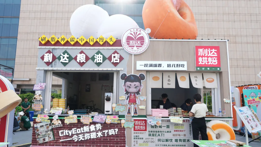 利達糧油公司展區主要展示利達主食與利達烘焙兩個系列產品,結合年輕主題,搭建了以“饅頭-中國刷脂神器”為主題的互動打卡點,設立打卡贈送“漆畫扇”活動,更好地向年輕群體宣傳了利達品牌,打破消費者對利達的固有認知,和年輕的消費群體展開友好的交流,為消費者提供多“young”性的優質碳水選擇。此外,結合夜市消費場景,新研發的利達花樣主食土豆、紫薯、香煎肉花卷、利達鍋巴菜貝果等,一經推出,立即成為市集的網紅產品,深受消費者喜愛。