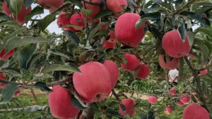 走進果園,蘋果樹縱橫排列,一顆顆鮮艷如滴的“中秋王”蘋果壓彎了枝條,在這里,游客可以親手摘下中意的果實,享受采摘的樂趣。