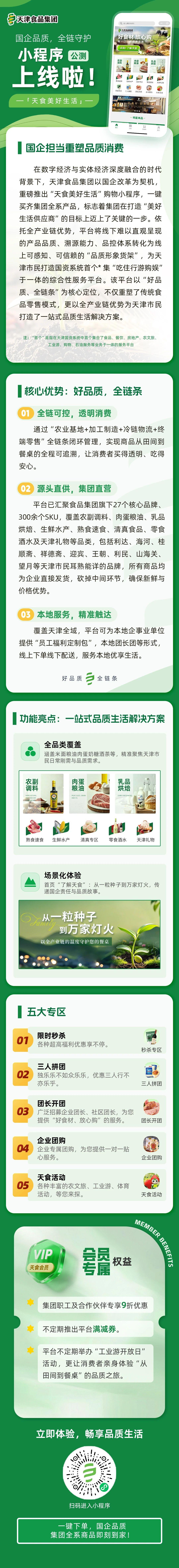 國企品質(zhì) 全鏈?zhǔn)刈o|天津食品集團「天食美好生活」小程序公測上線啦!