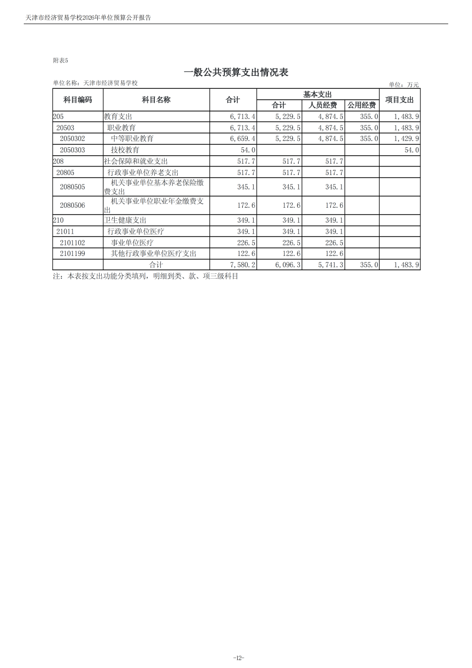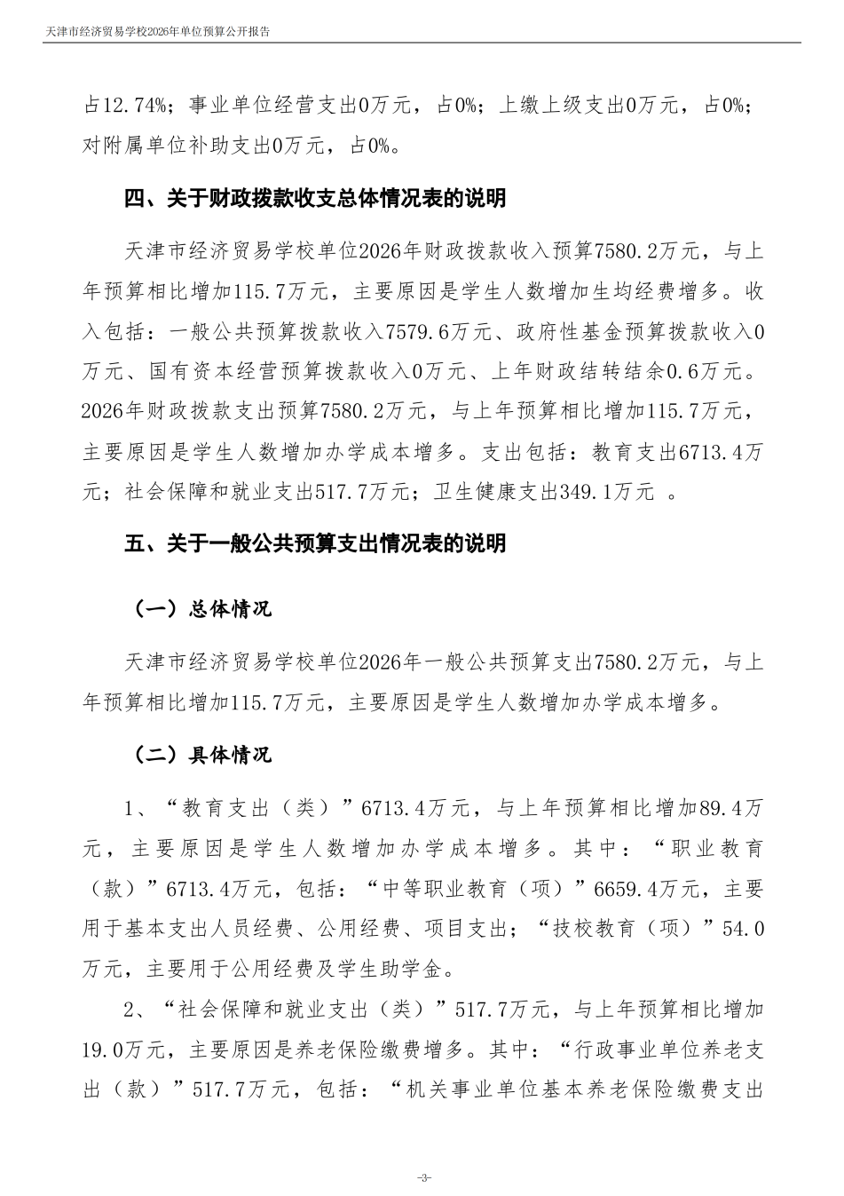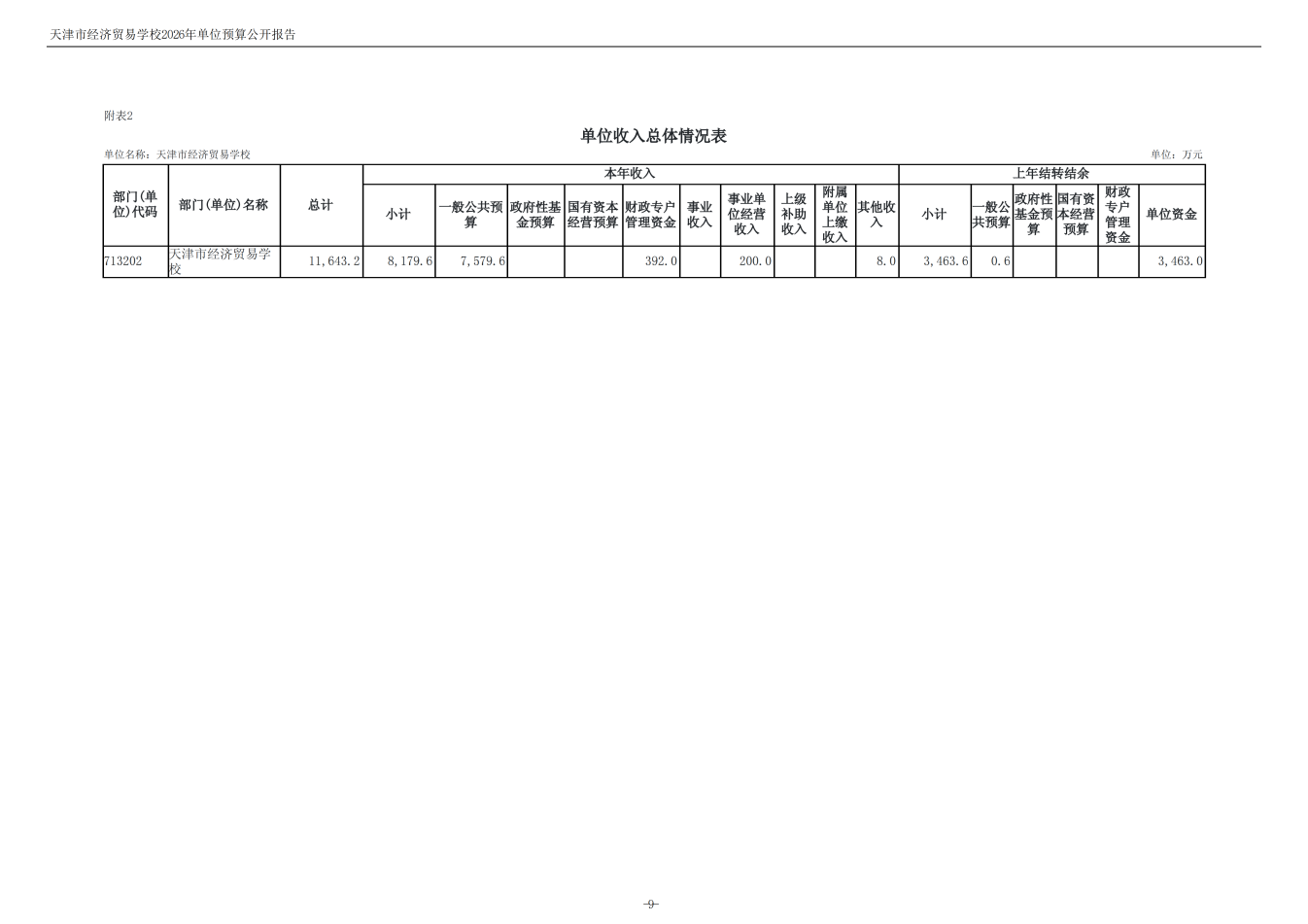 天津市經濟貿易學校2026年度單位預算